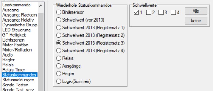 Den Schwellwert wiederholen. Untern Kommandos und dann Statuskommandos.