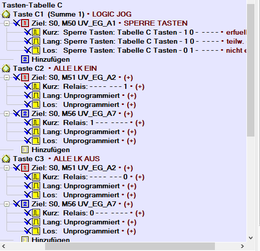 Anbei (siehe Anhänge) die damalige Programmierung im LCN in der ich mittels LED und Logik-Funktion Tasten die ich über einen Schalter betätige sperre oder entsperre je nach EIN-Zustand des Relais. Also normalerweise nichts Großes... :|